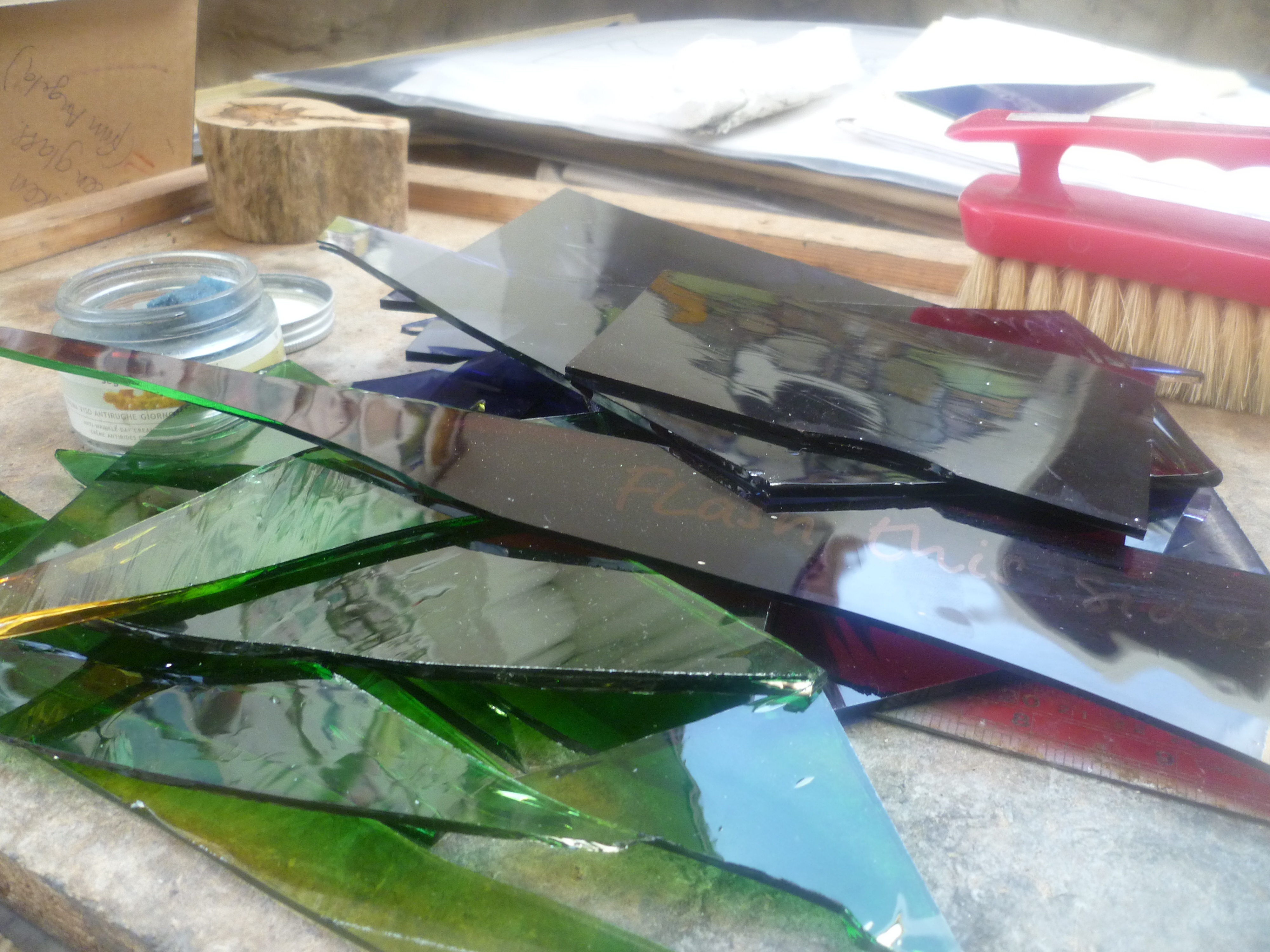 And on arrival of stunningly beautiful glass I tweaked the design a little, coloured in my drawing and lived with it for a while stuck to my back door to make sure I was happy.