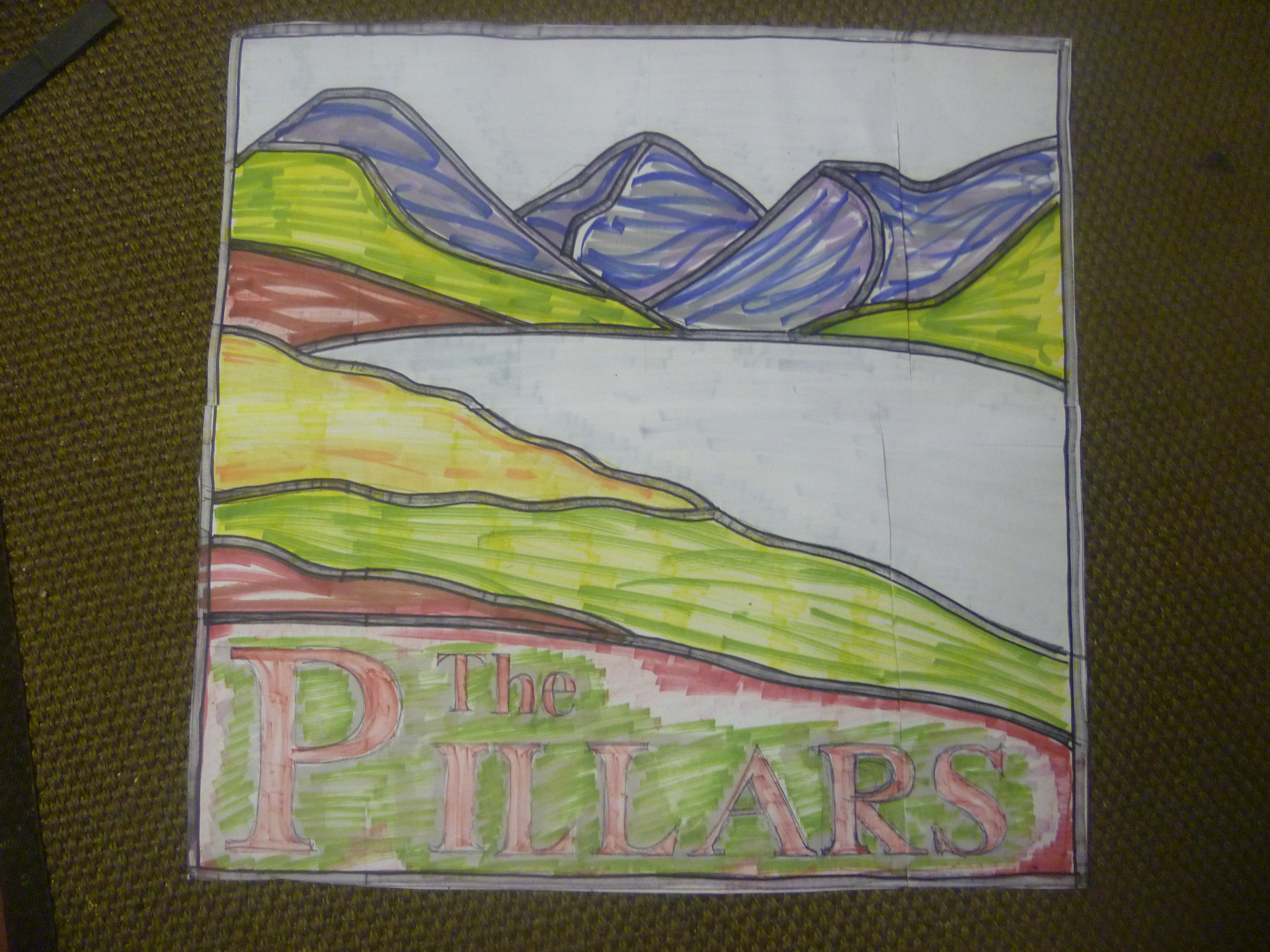 It started with Mike’s painting of mountains and lake….I worked it up into a scene of great significance…..Wastwater. The halfway point of the Bob Graham round, a feat that Mike completed a couple of years ago in truly horrendous conditions – he has become famous for his ‘wet lap’. (I have fond memories of huddling down on Stake Pass in the middle of the night with pal Jess, she dressed as a pumpkin lantern and me equipped for fishing with me brolly, whilst waiting for Mike to arrive so we could feed him some grub and send him on his way……. but that’s a whole other tale).