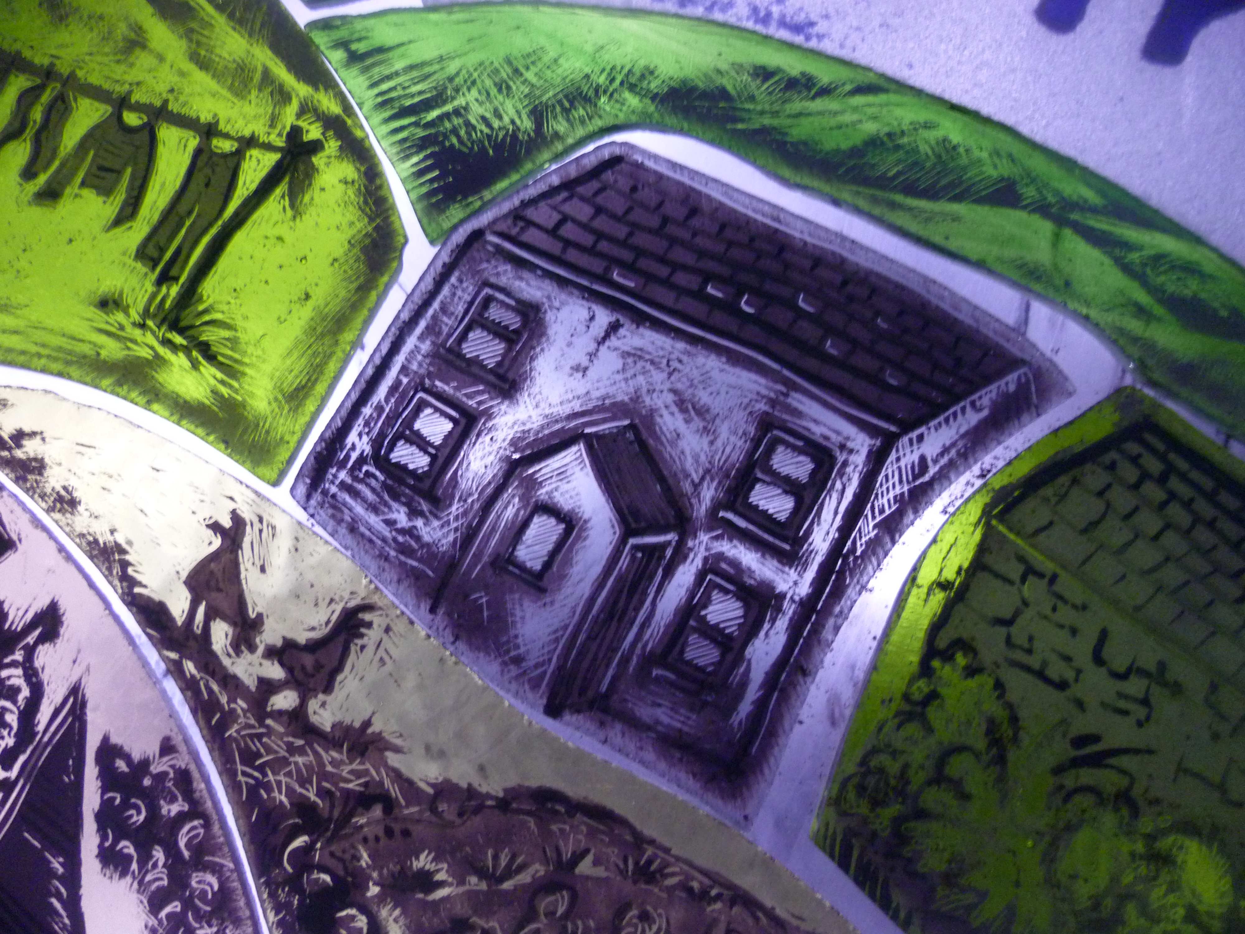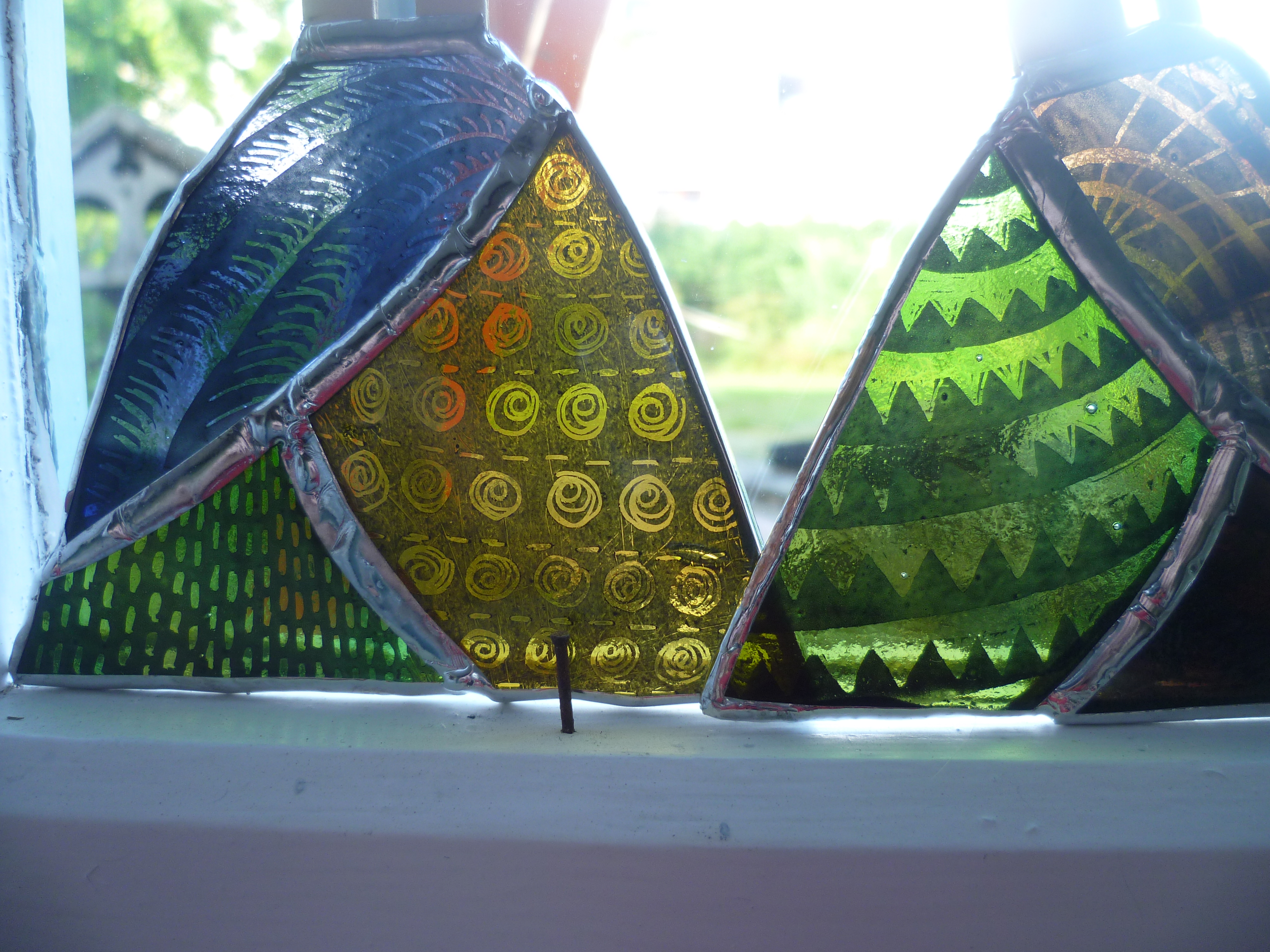 The following morning and washing all my other pieces, things were looking better. Foiling and joining on the Saturday produced a wee street of painted ‘Wee House’s on the Hill’. (Slowly going back up).