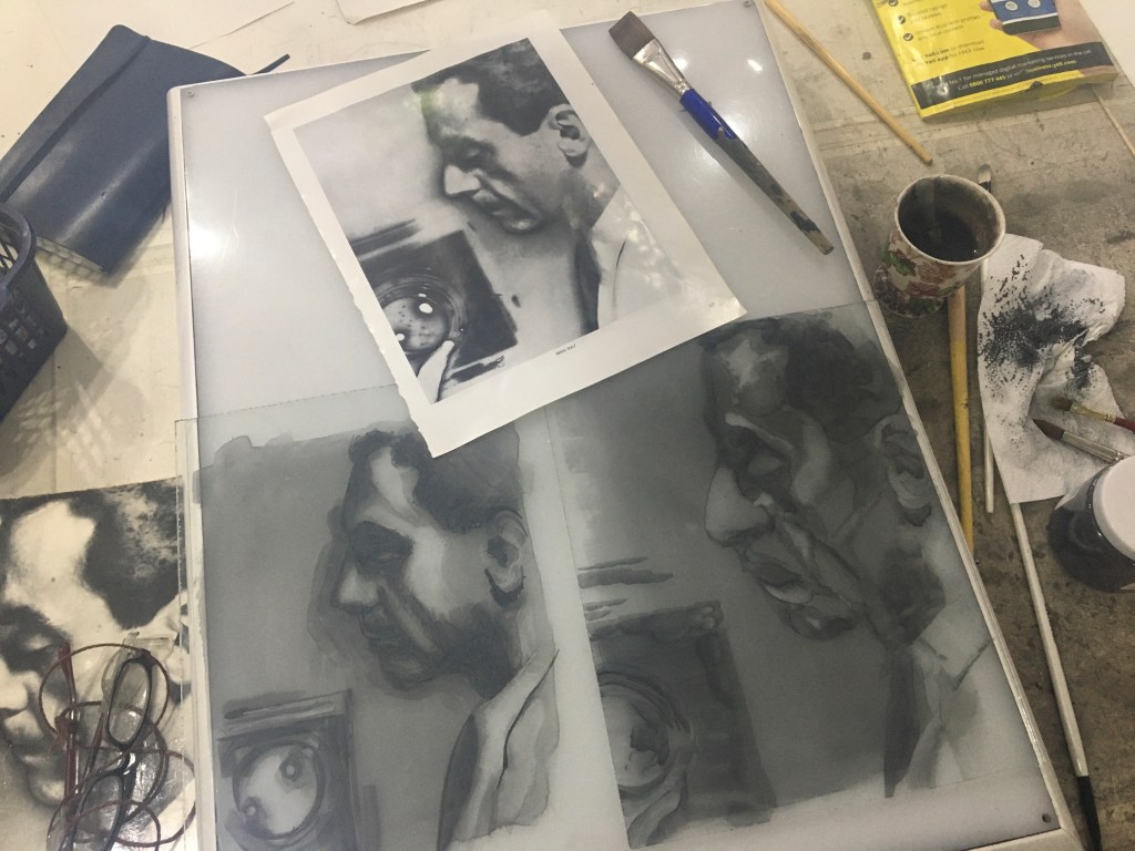 I’ve had two sessions now with Debs. I visited her in her studio at Todmorden and absorbed her environment and how she works. We chatted and chatted about the things we will do. Visits to sites of amazing glass. Experiments we will undertake working to Albinus Elskus’s bible to painting on glass !..