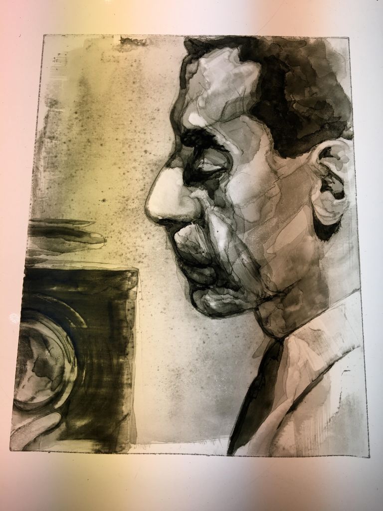 We chose an image and daubed paint swiftly (time was tight)… and fired once.