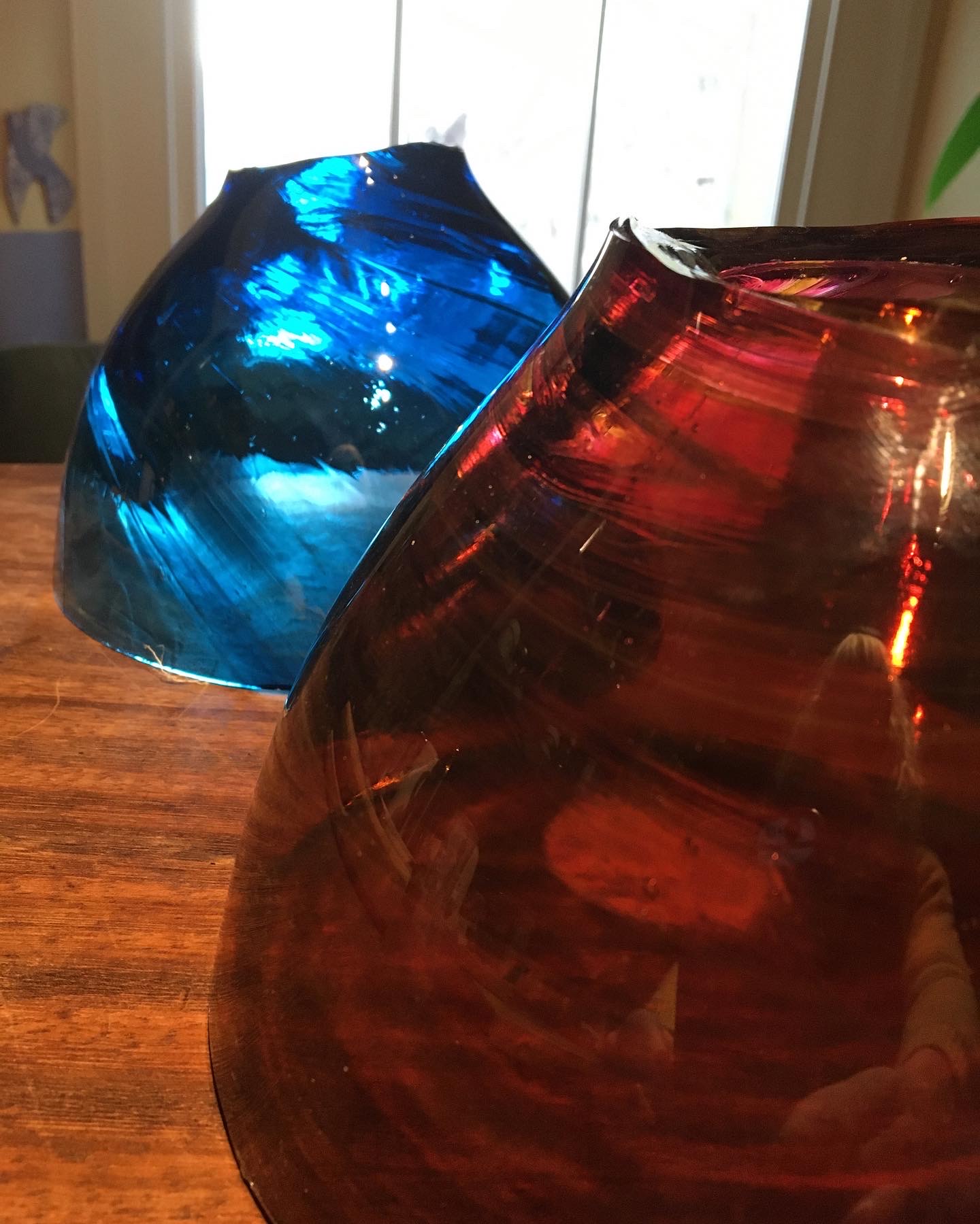 Swirling crystal sheets of pure magic beauty. Stacked with no applause in modest wooden racks. A tool of my trade. The jewel of my trade. And once again I think ‘labour of love’ after meeting Dave, The last flat glass blower. He was retiringly redundant after blowing glass for 20 years. Works of art on minimum wage.
