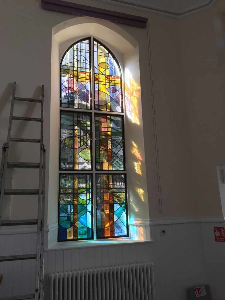 On Sunday May 14th the window recieved its ‘dedication’. Which is really the acknowledging of its existence within the worship space…. in the context of a church service. It was a very good day, and I am really very grateful to Rita Hogarth for sponsoring this project in memory of her late husband. And extremely grateful for the trust that the United Reformed Church at 106 Highgate placed in me.