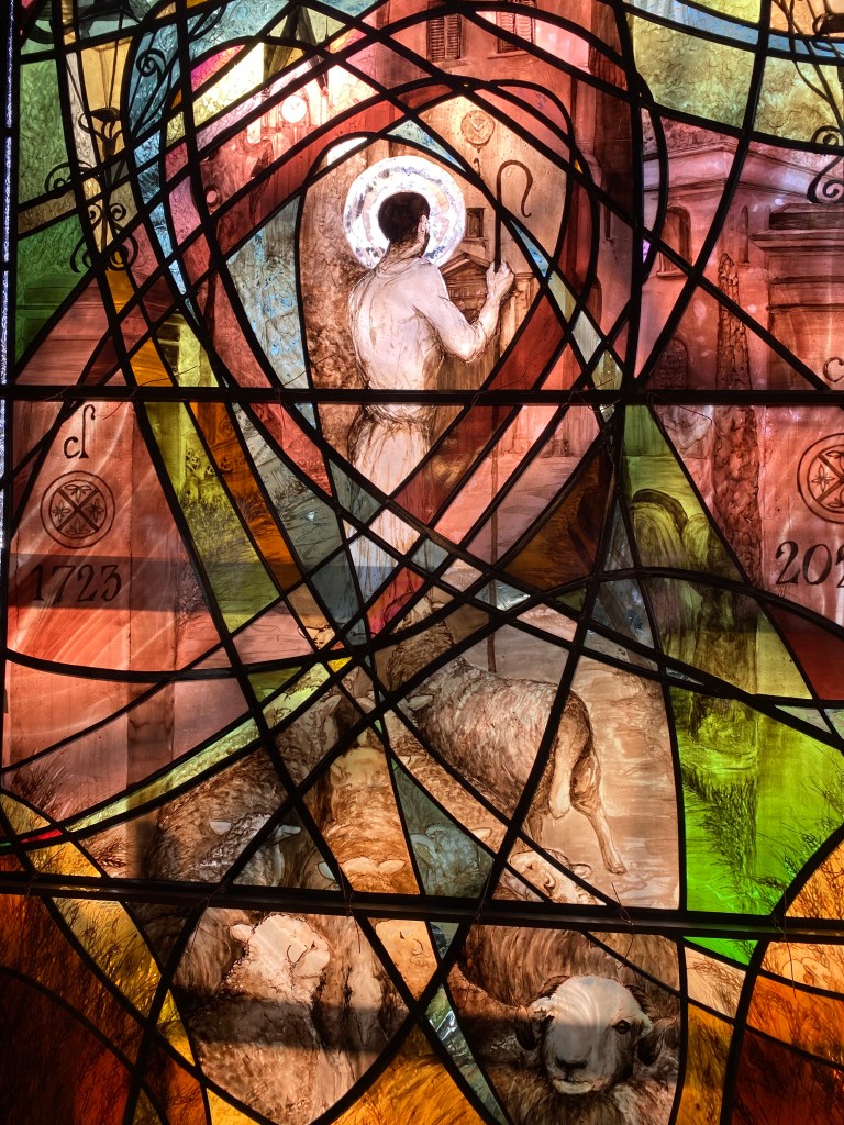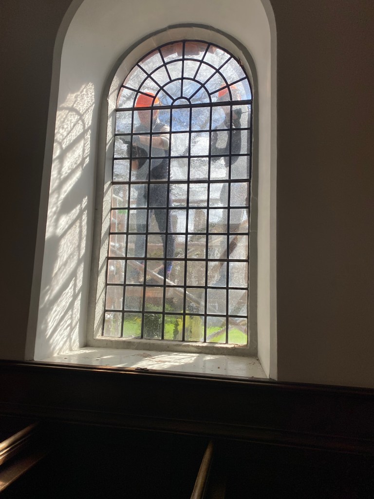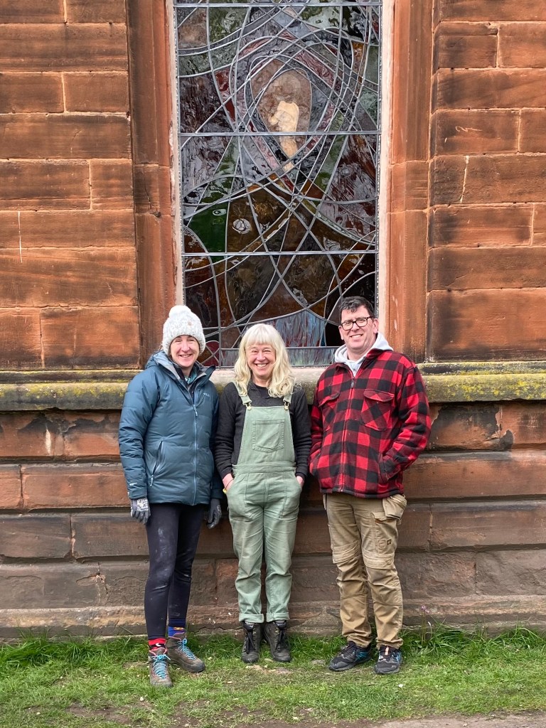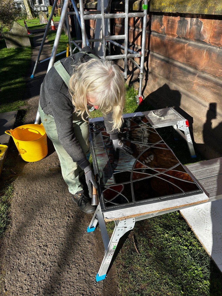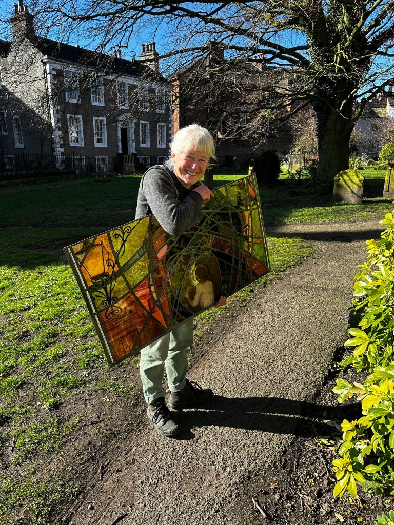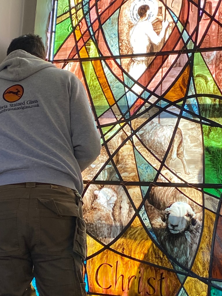 Yes, mostly thanks. Thanks for being given the opportunity. Thank you to Colin, the donor, for sponsoring this, and to the Church and Colin for trusting me to carry this out. Thank you to Peter and Charlotte at Cumbria Stained Glass for their support, tape measures, polishing brushes and most expert fitting…. Thanks to Deb my mentor and sounding ear.