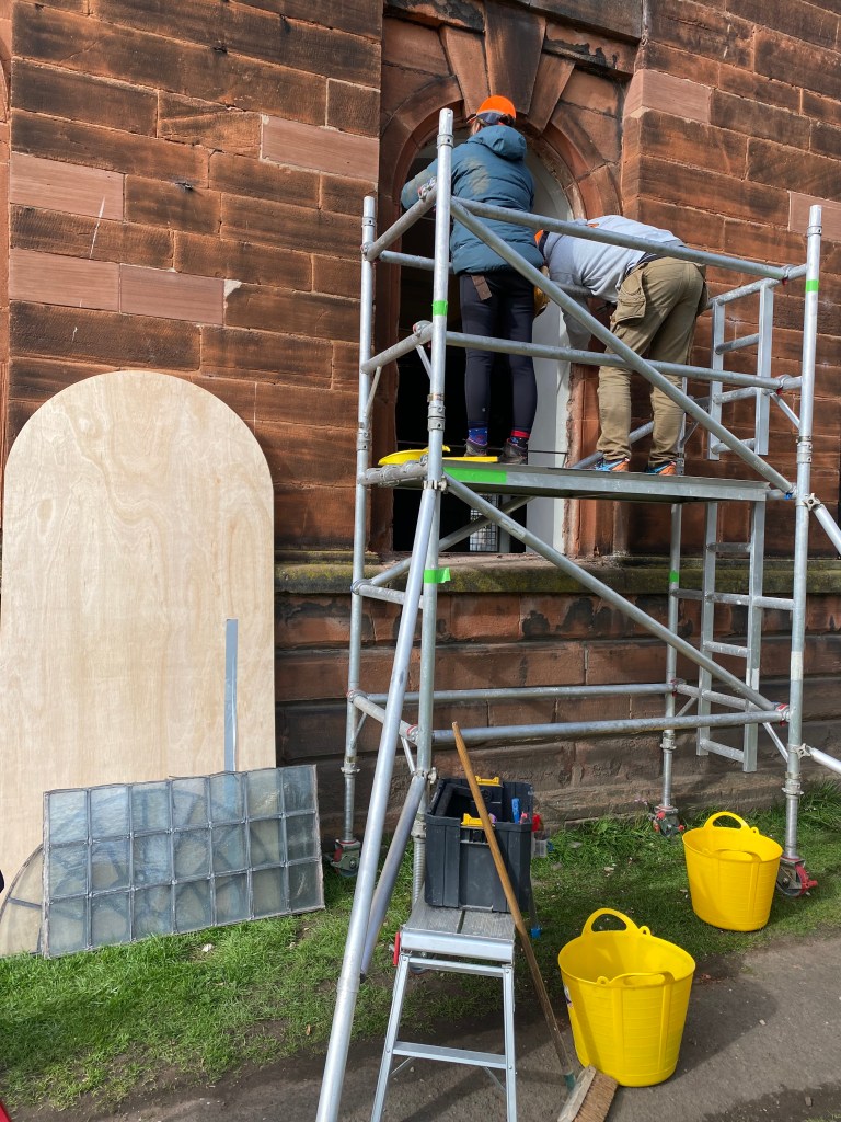 All of this….. on the Thursday just before Easter…… And Reverend David asked could we cover up the panel so that he could make the big ‘reveal’ on Easter Sunday.
