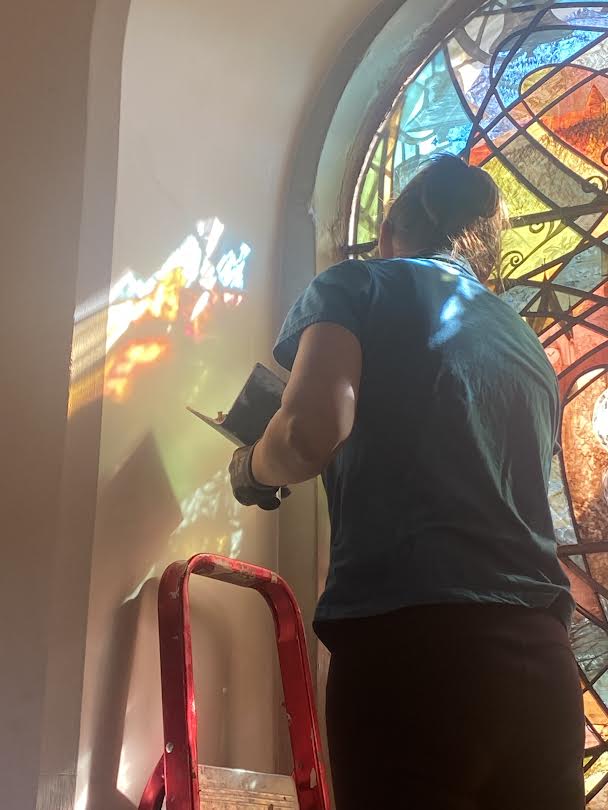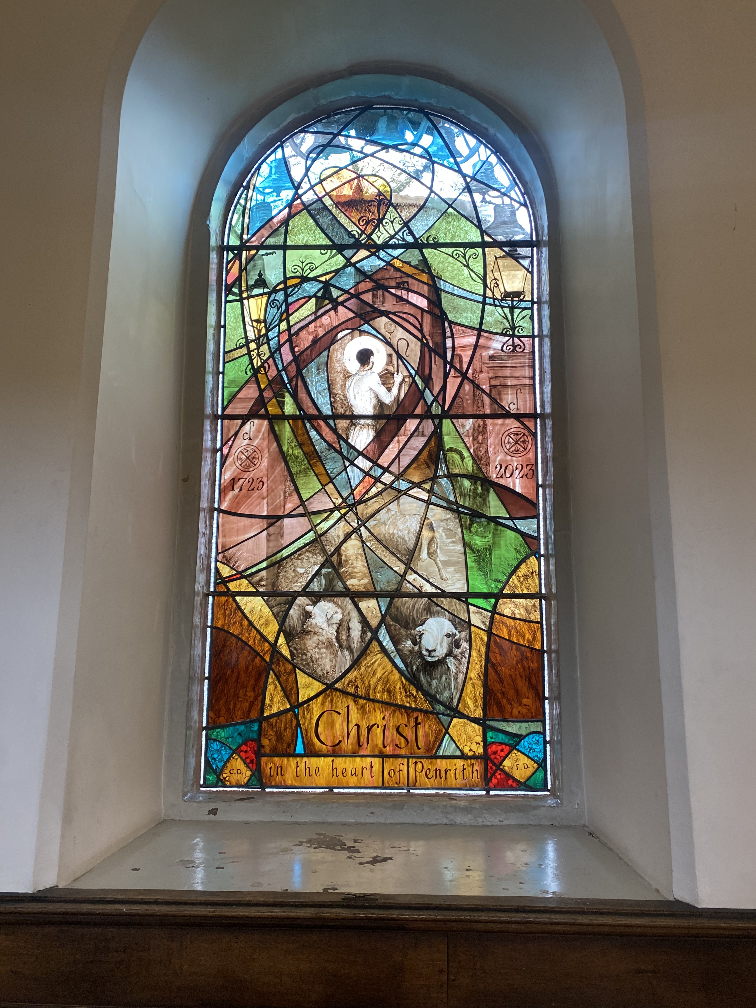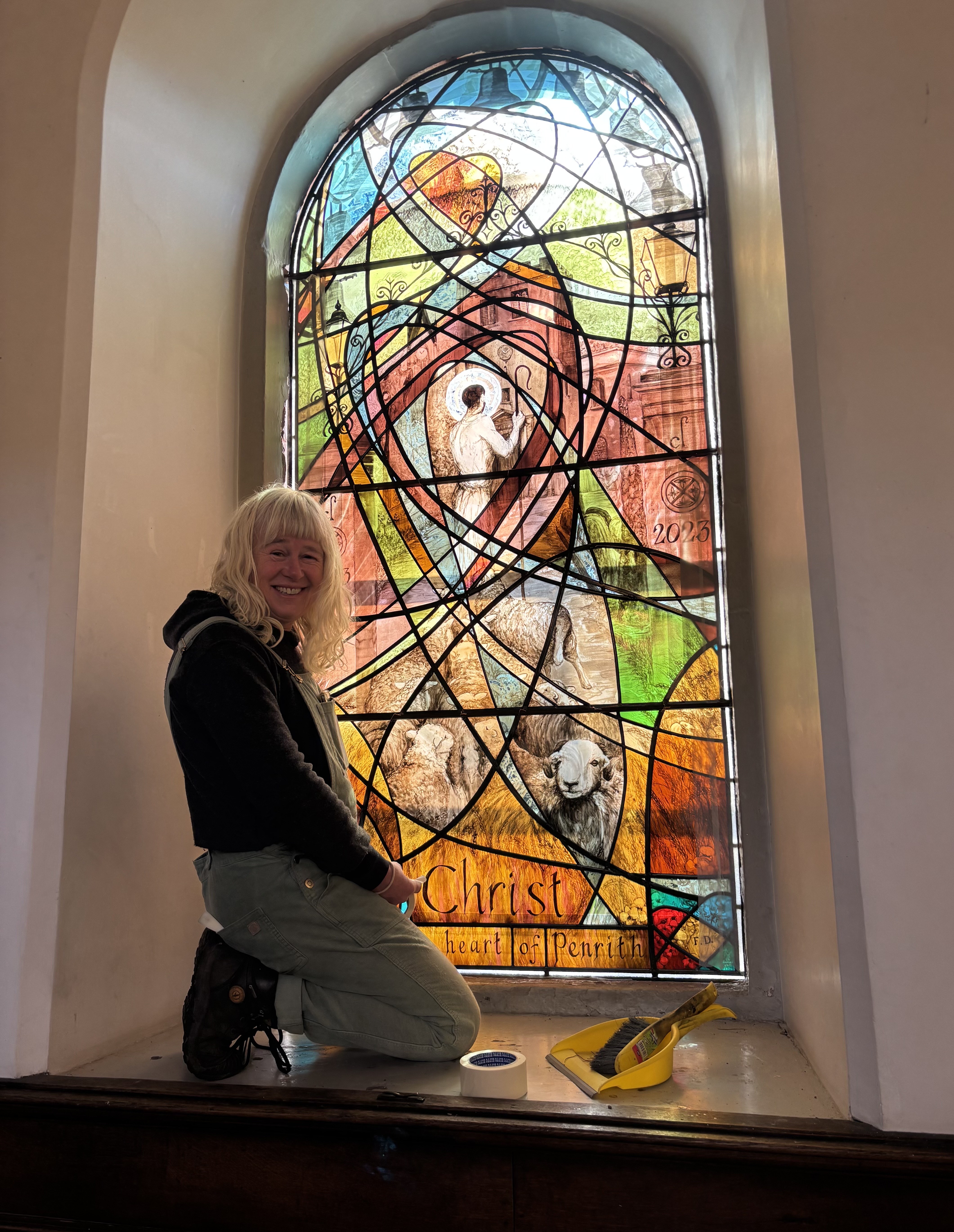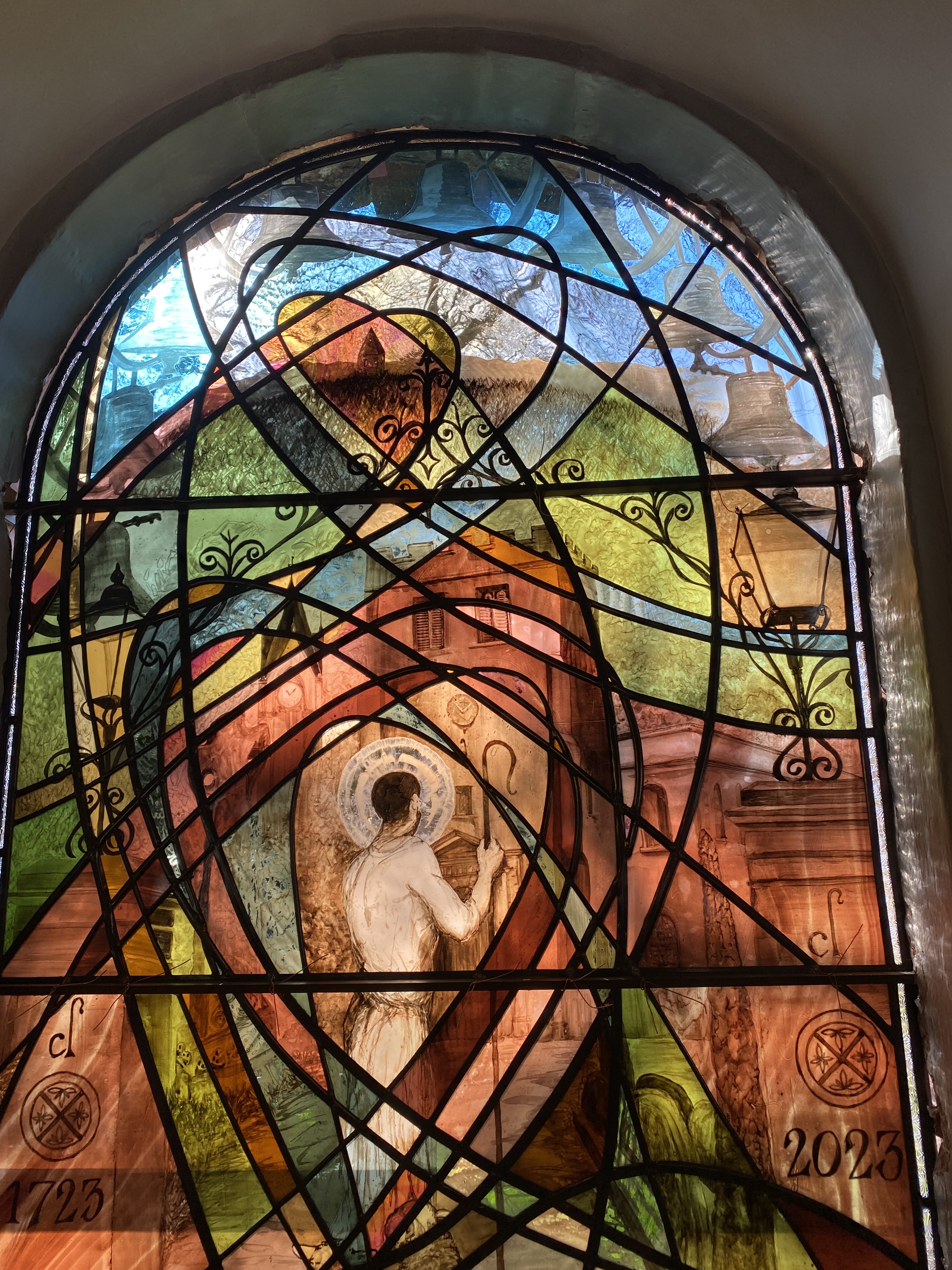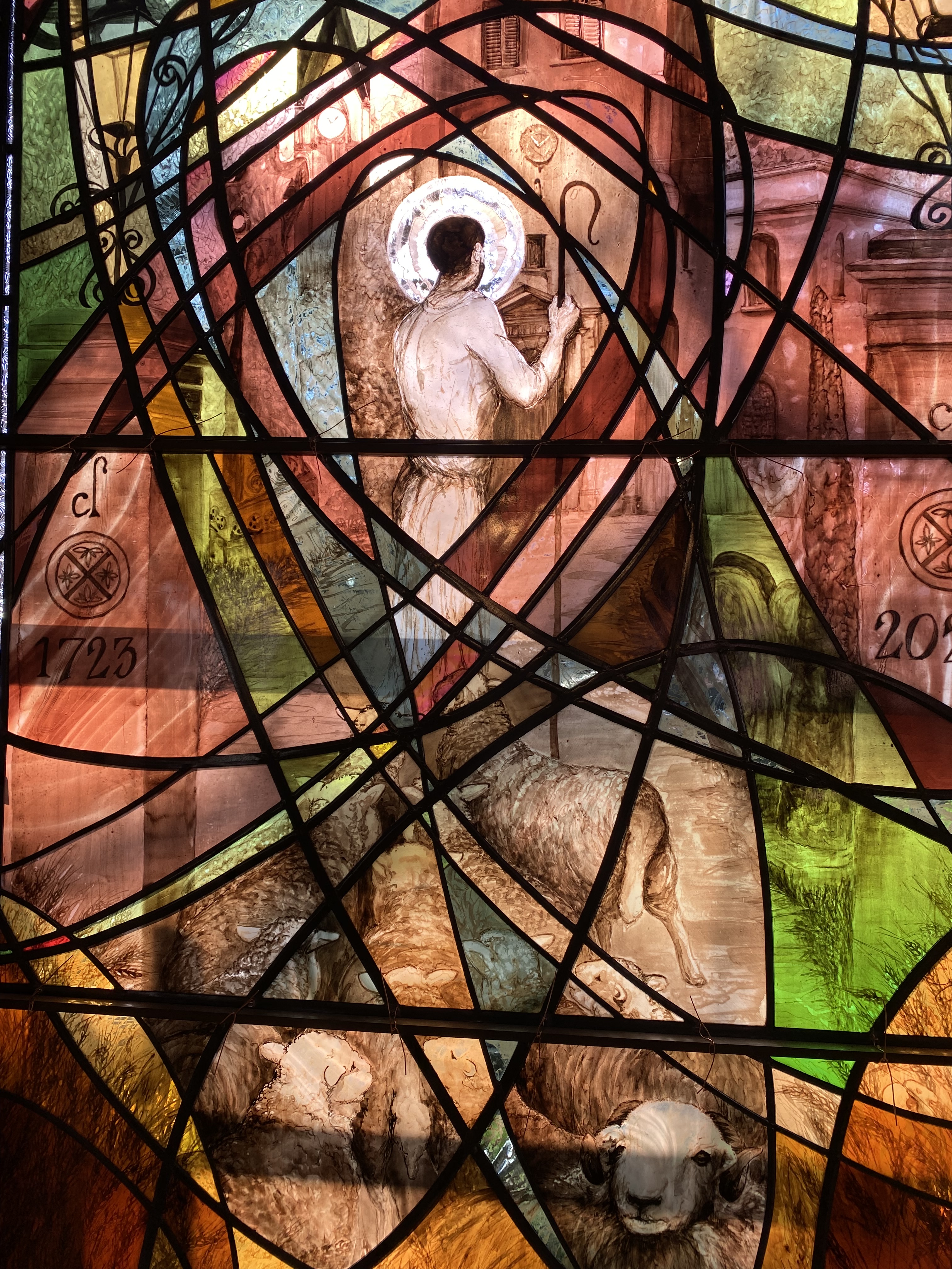This is the biggest window I have done. The first that I have fitted into stone. The first that I have built and connected together in this way. The most important composition I have ever put together. Words can barely explain how I feel about this project. Trust. Belief. Beauty. Joy. Thanks.