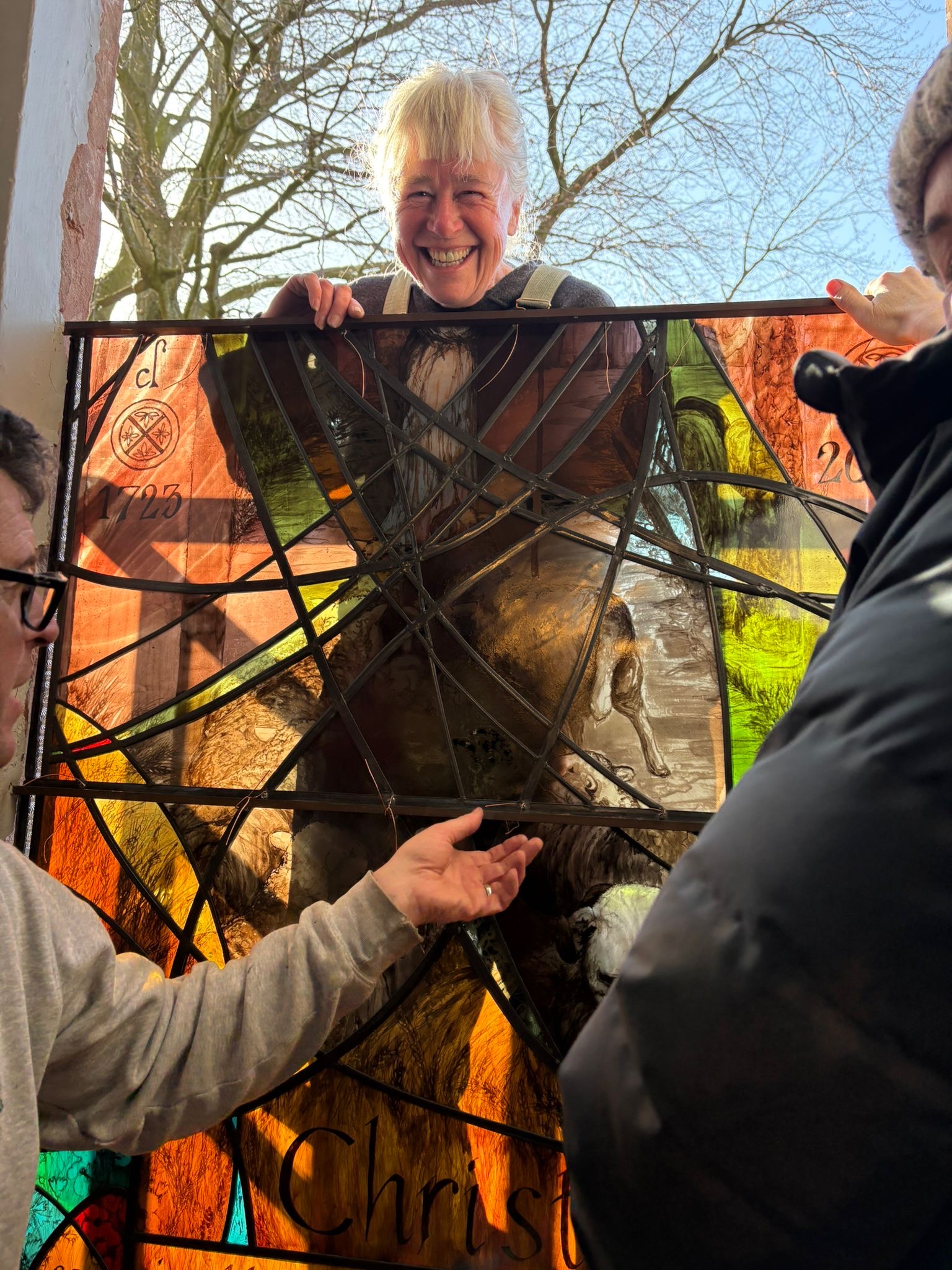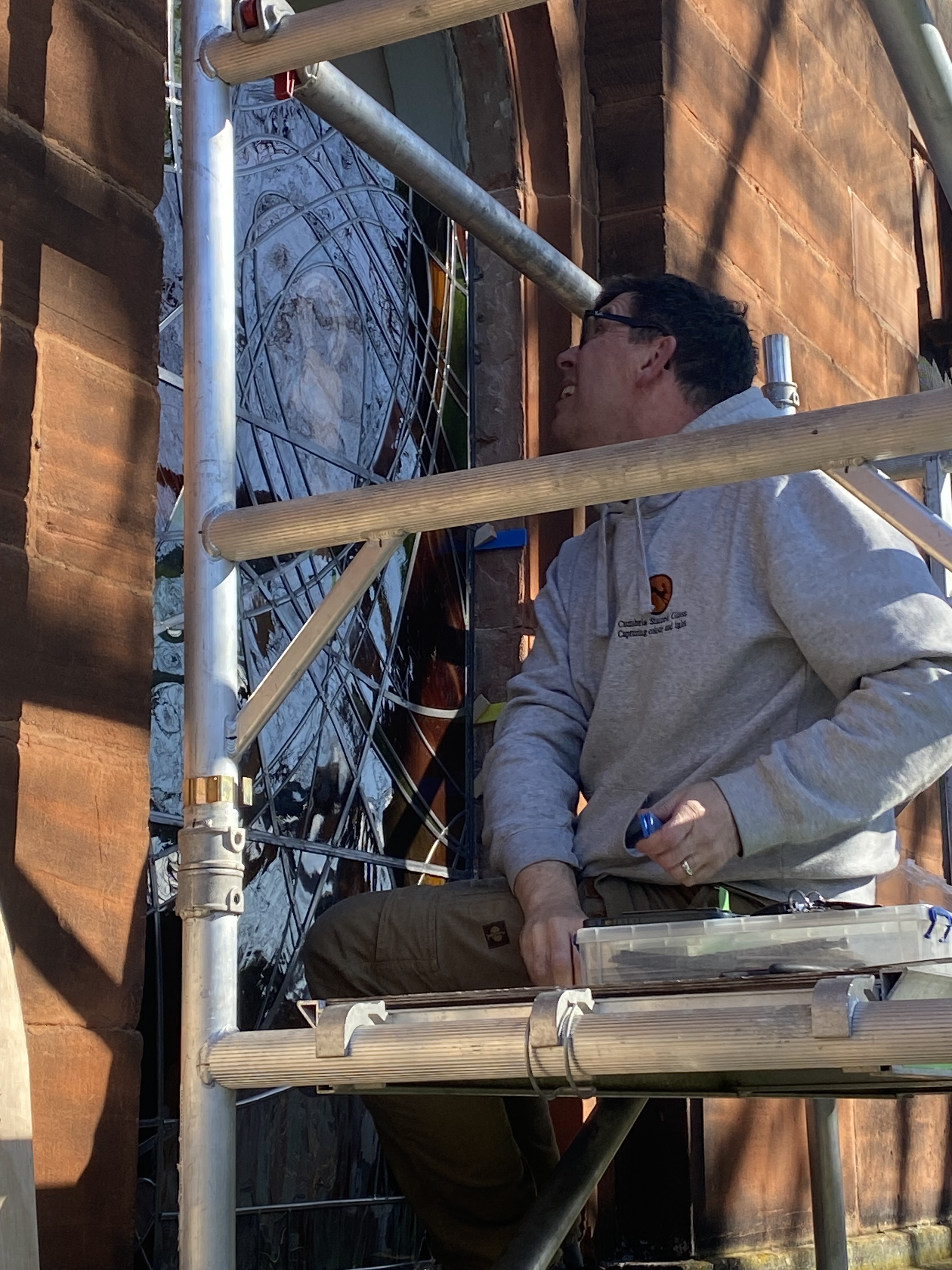 Yes, mostly thanks. Thanks for being given the opportunity. Thank you to Colin, the donor, for sponsoring this, and to the Church and Colin for trusting me to carry this out. Thank you to Peter and Charlotte at Cumbria Stained Glass for their support, tape measures, polishing brushes and most expert fitting…. Thanks to Deb my mentor and sounding ear.
