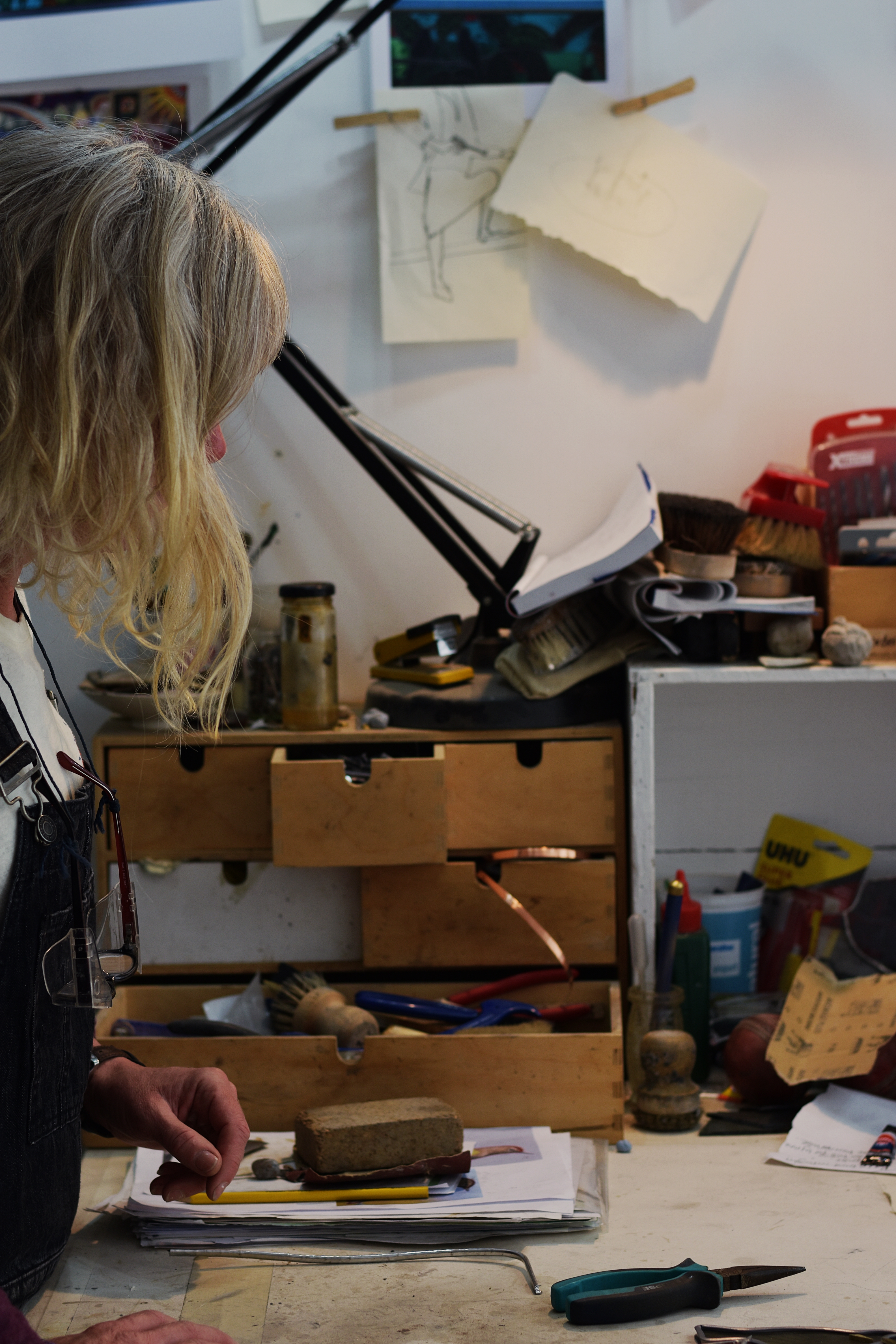 My first ‘making’ passion was sewing. What I couldn’t knock up using a quids worth of fabric off the market and a photo from ‘Honey’ magazine!  My love of colour, form and texture stems from this.  The skills, the handling of the tools and the technical side of my work are probably helped by my background in engineering. My love of 3D will come from my dabbling in many sculptural techniques over the years such as dress- making, textiles, basket-making, green willow working and ceramics. My love of colour and detail comes from being stimulated by my surroundings. I am lucky. I live in a beautiful part of the world. I have the sea and the mountains at my disposal. What more inspiration could you ask for?